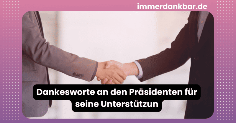 Diese Beispiele für Dankesworte an den Präsidenten für seine Unterstützung sind ideal, um deine Anerkennung auf respektvolle und effektive Weise auszudrücken und gleichzeitig die Bedeutung seiner Führungsrolle zu betonen.